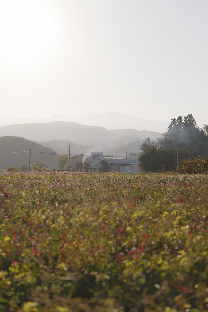 秋の午後の日射しが満開の菊畑を輝かせる。